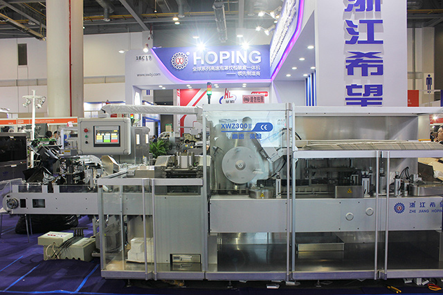 展会现场,浙江开云(中国)展出了DPH320HII全伺服高速辊板泡罩包装机、XWZ300Ⅱ高速装盒机、全自动泡罩装盒包装生产线等。