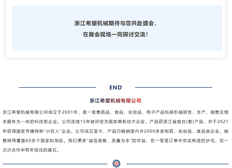 公司是一家集制药机械、包装机械、食品机械及化妆品机械的研发、生产、销售及相关服务为一体的科技型企业.
